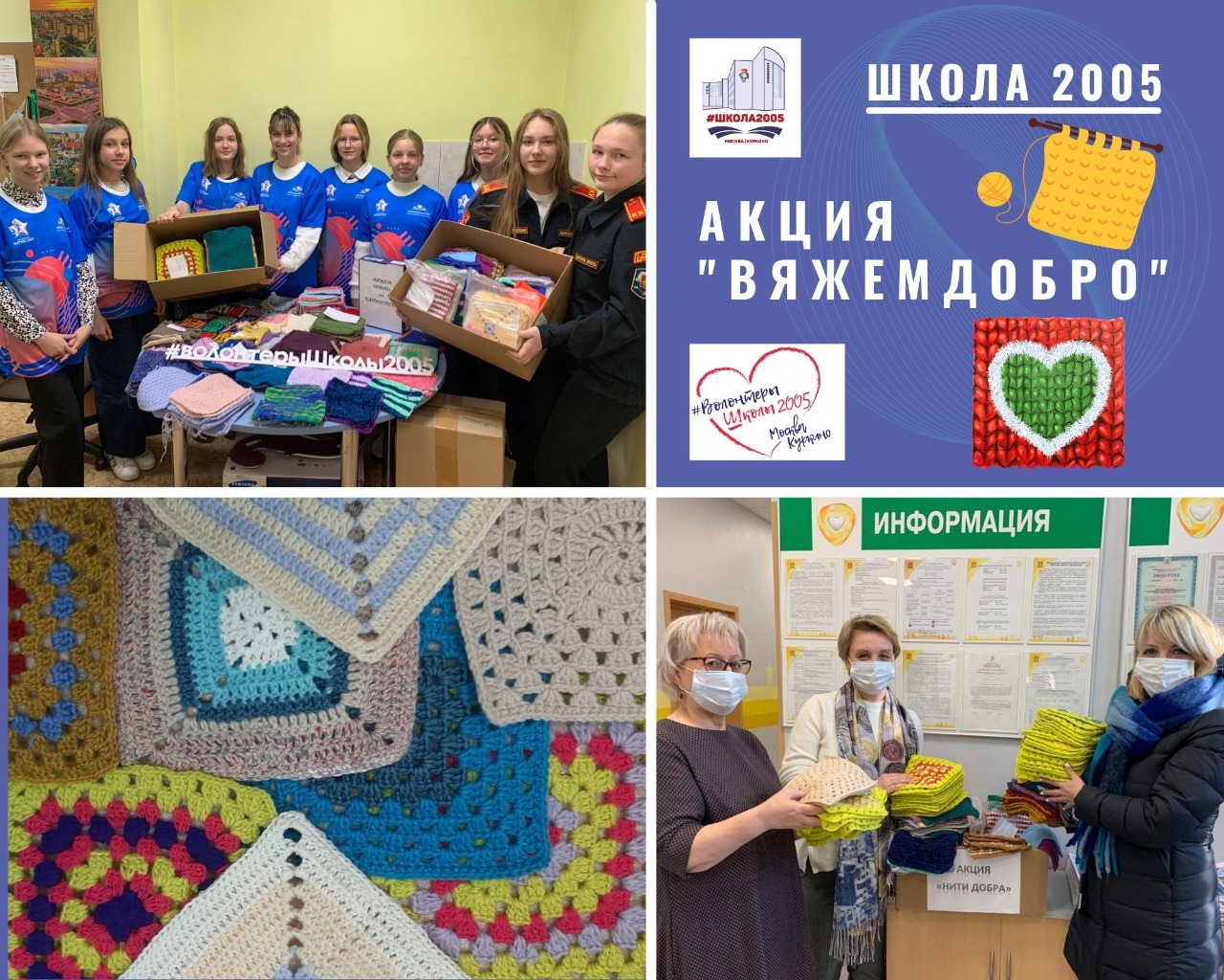 БЛАГОДАРИМ ОТ ВСЕЙ ДУШИ УЧЕНИКОВ, ПЕДАГОГОВ, РОДИТЕЛЕЙ И, КОНЕЧНО, НАШИХ ВОЛОНТЁРОВ ЗА АКТИВНОЕ УЧАСТИЕ В АКЦИИ «ВЯЖЕМ ДОБРО».